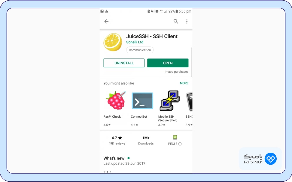 ابتدا JuiceSSH را از Google Play Store دانلود و نصب کنید.