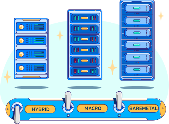 سرورهای اختصاصی پارسپک در سه نوع برمتال (Baremetal)، هایبرید (Hybrid) و ماکرو (Macro) در موقعیتهای ایران و اروپا ارائه میشوند. بهطور کلی سرور هایبرید منابع اختصاصی را با انعطافپذیری سرور مجازی ارائه میدهد و ماکرو سرور همین منابع را با قدرتی بالاتر برای پردازشهای سنگین فراهم میکند. در مقابل، سرور برمتال با حذف کامل لایه مجازیساز، دسترسی مستقیم و بدون واسطه به تمام قدرت سختافزار فیزیکی را ممکن میسازد. همچنین امکان انتخاب سیستمعامل دلخواه لینوکس، ویندوز و ESXi (صرفا برای برمتال) نیز وجود دارد.