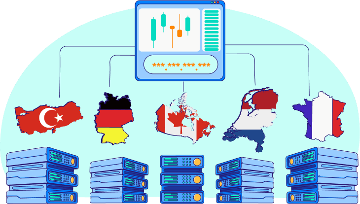 سرورهای مجازی ترید پارسپک در موقعیتهای مختلف آلمان، هلند، فرانسه، ترکیه و کانادا ارائه میشود. شما میتوانید با IP ثابت اختصاصی و بدون محدودیت دسترسی، معاملات خود را با پینگ پایین و سرعت بالا انجام دهید. برای استفاده از IP یک کشور خاص در معاملات خود، میتوانید هنگام خرید VPS ترید، موقعیت مورد نظر خود را از بین ۵ کشور مختلف انتخاب کنید.